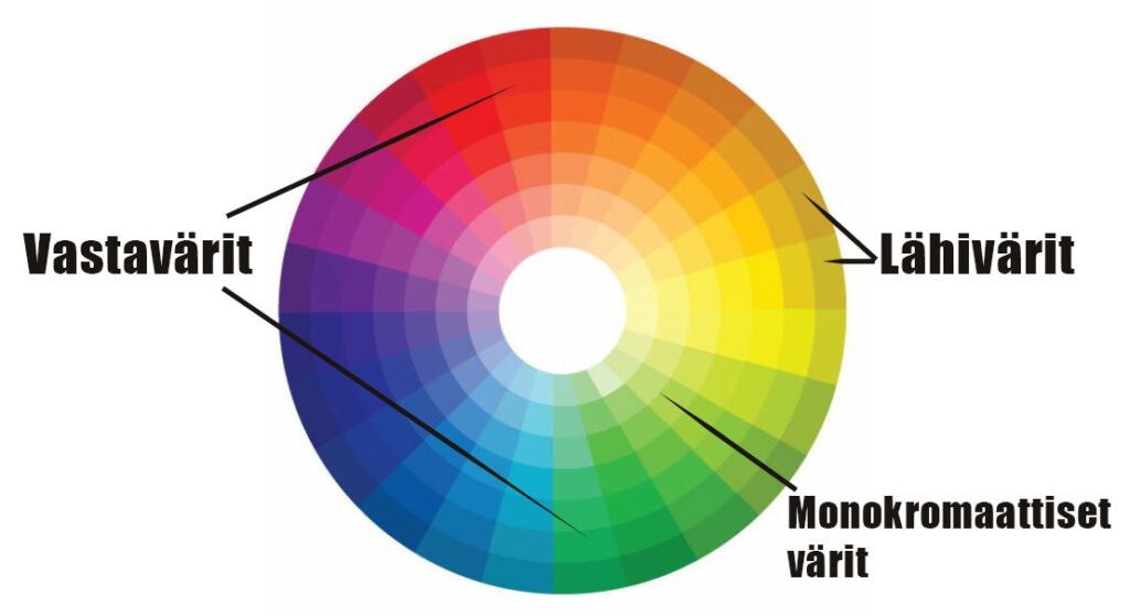 Väriympyrä auttaa hahmottamaan värien suhteita toisiinsa.